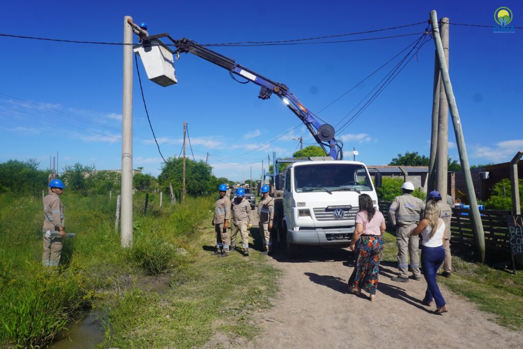 Estas tareas se desarrollan en la zona de Quinta N.º 18 y 19 de nuestra localidad, con el objetivo de fortalecer y mejorar el servicio eléctrico, brindando mayor seguridad y mejor calidad de vida a los vecinos.
